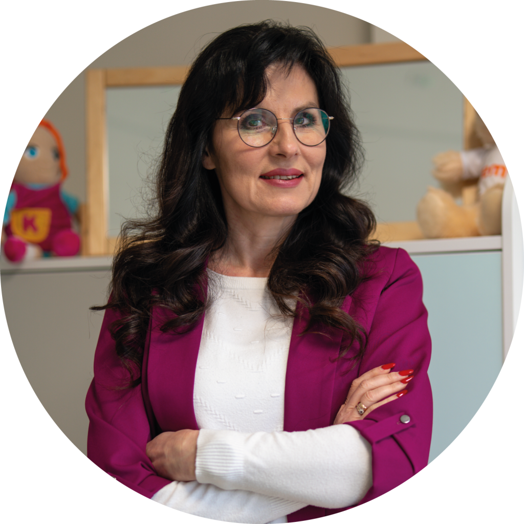 Pani Dyrektor to nauczycielka dyplomowana i magister wychowania wczesnoszkolnego z 36-letnim doświadczeniem zawodowym oraz wykwalifikowana logopedka, pedagog specjalny, specjalista w zakresie edukacji i terapii osób z zaburzeniami ze spektrum autyzmu, oligofrenopedagog. Z pasją wspiera rozwój dzieci w wieku przedszkolnym, szczególnie poprzez pracę metodą projektu edukacyjnego, która rozwija samodzielność, ciekawość świata i kreatywność najmłodszych.